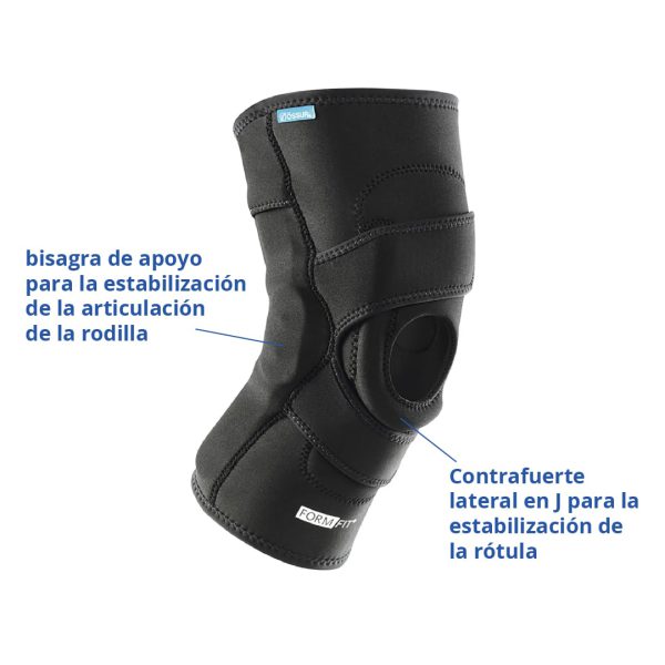 Rodillera con bisagra lateral J está diseñada dar soporte adicional a la rótula y la realineación de esta.